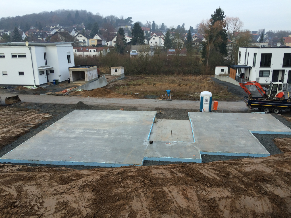 Neubau einer Bodenplatte für zwei Doppelhaushälften mit Garage Beginn des Rohbaus: 2017 Ende des Rohbaus: 2017 Neubau Bodenplatte Rossdorf 2017
